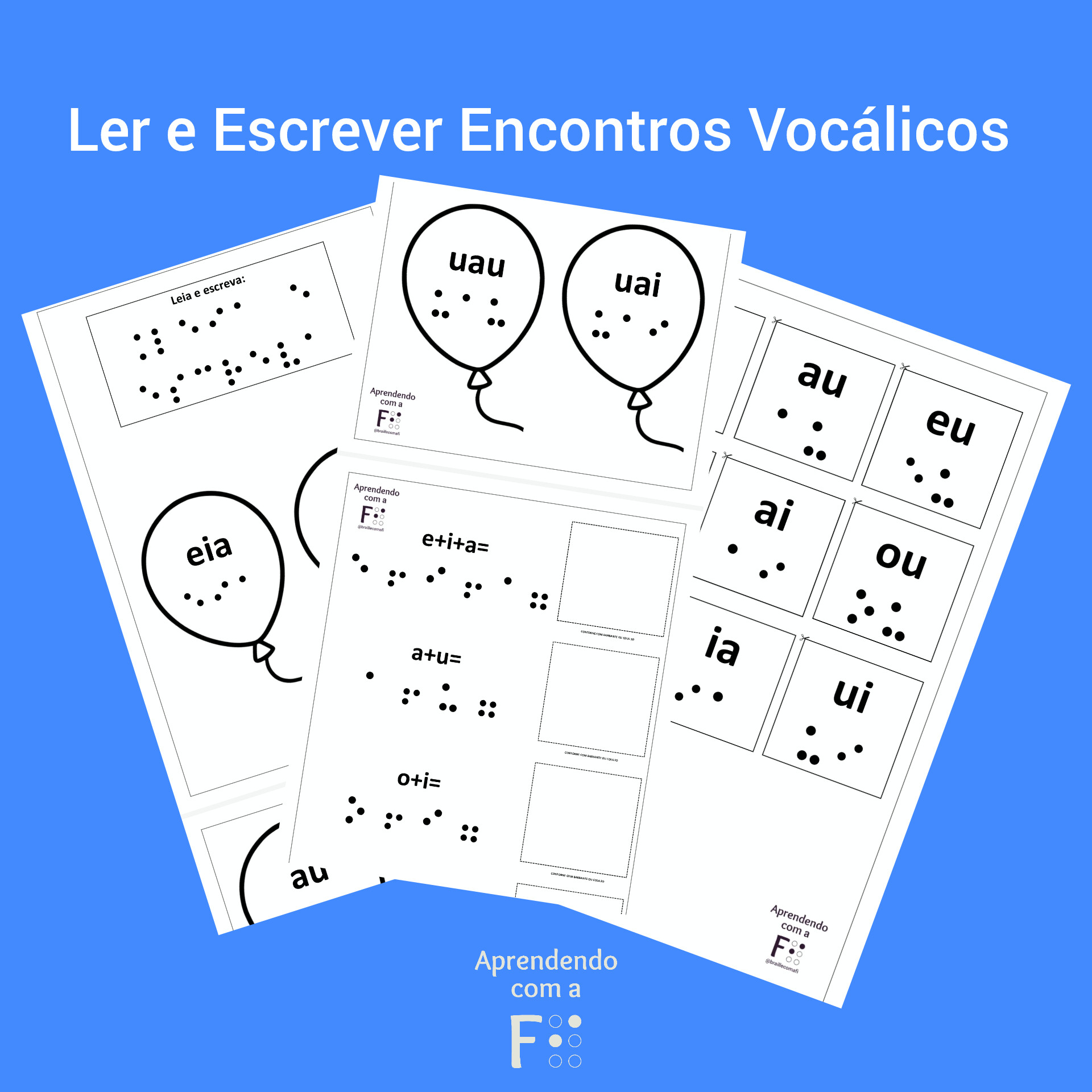 Com essa atividade o aluno irá ler, escrever encontros vocálicos (que pode ser na reglete, máquina ou cela Braille) e depois juntar as letrinhas e descobrir qual encontro vocálico formam.